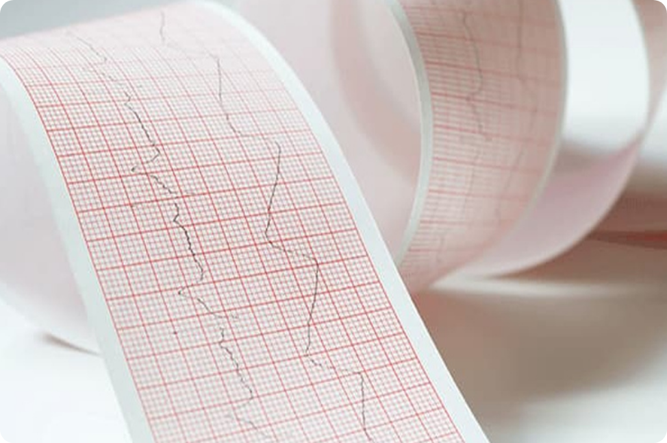 心電圖紀錄心臟的電流,是一種最常用的基本心臟檢查。 原理是透過心臟收縮和擴張運動所產生的弱電流... ,當此種電流流經全身時,可經由貼在手腳上的電極片... 轉移到電流計,再以波紋記錄在紙帶上,這就是心電圖。 當心臟機能發生變化時,心電圖便會出現異常顯示。在心肌梗塞的診斷中,心電圖可以特異性的分辨出心肌梗塞的區域。心臟專科醫生可根據波形變化,評估及診斷患者之情況。